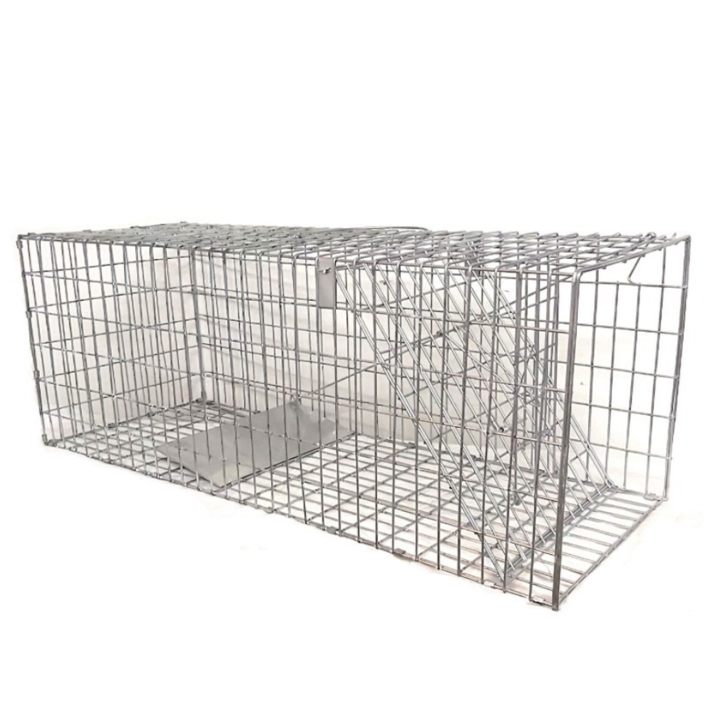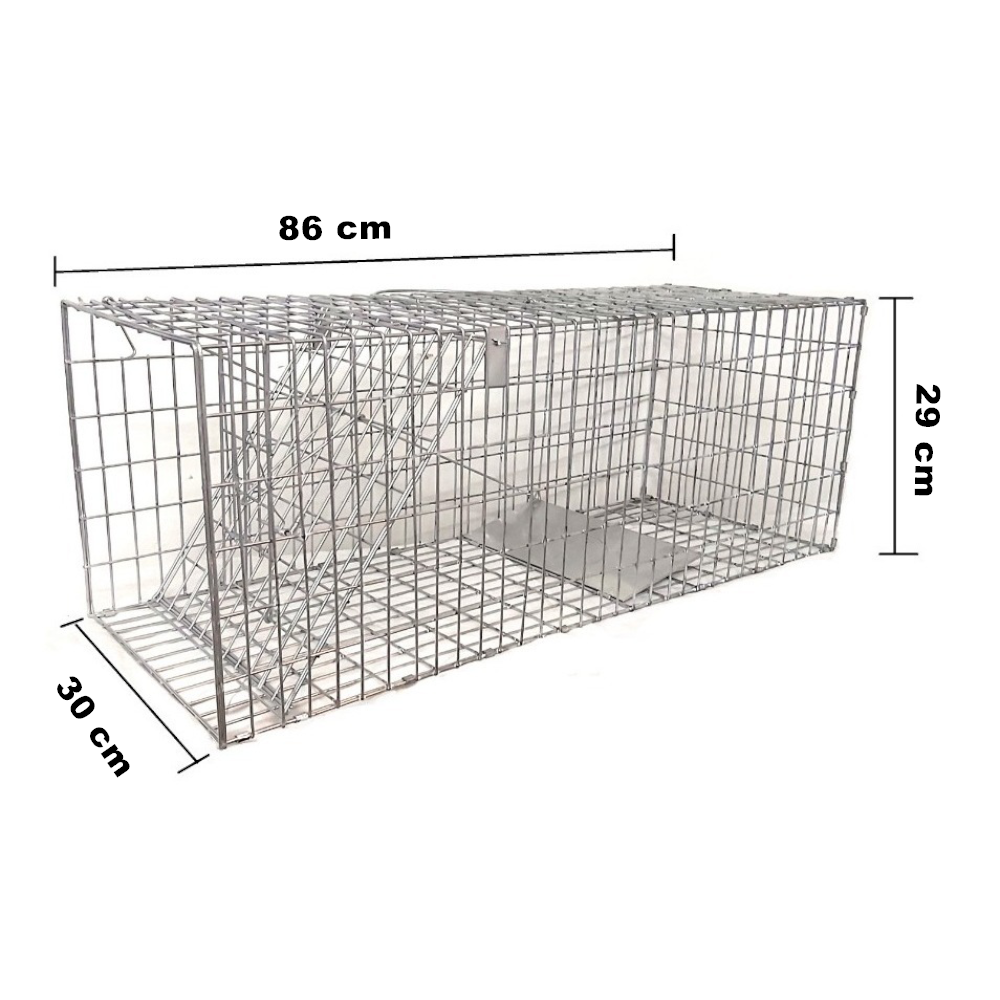 Ideal para capturar gatos domésticos y especies ferales como: tlacuaches, cacomixtles, armadillo y animales de tamaño similar.  Fabricación en varilla de acero.